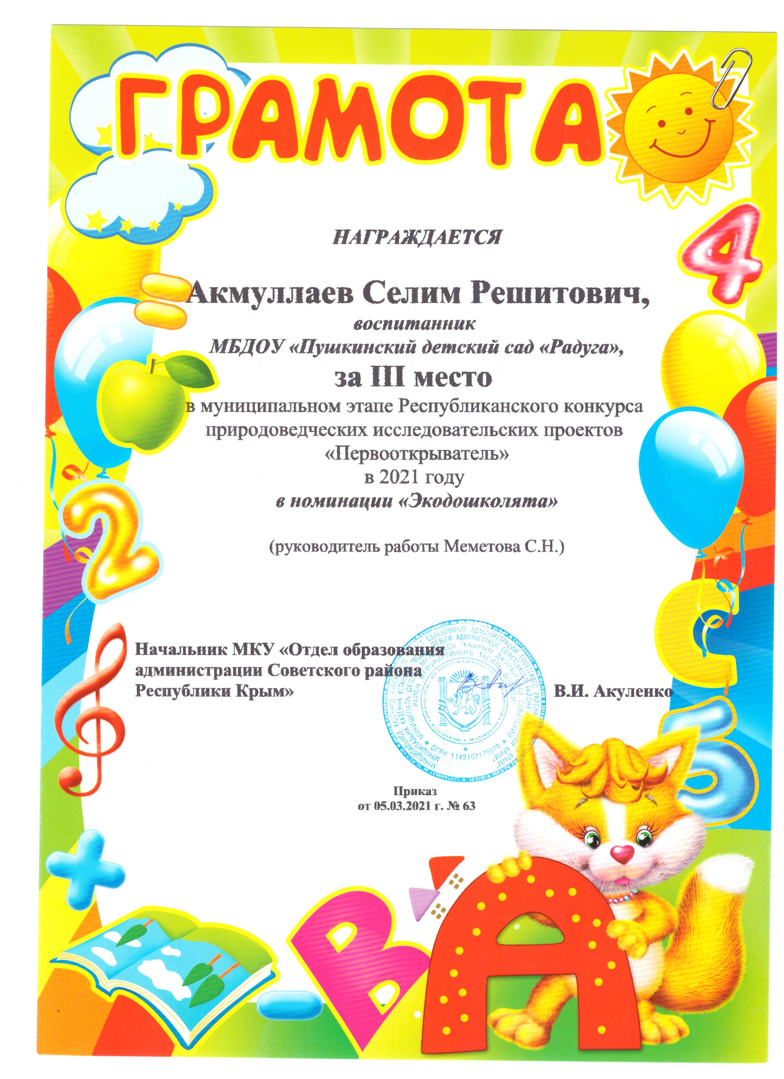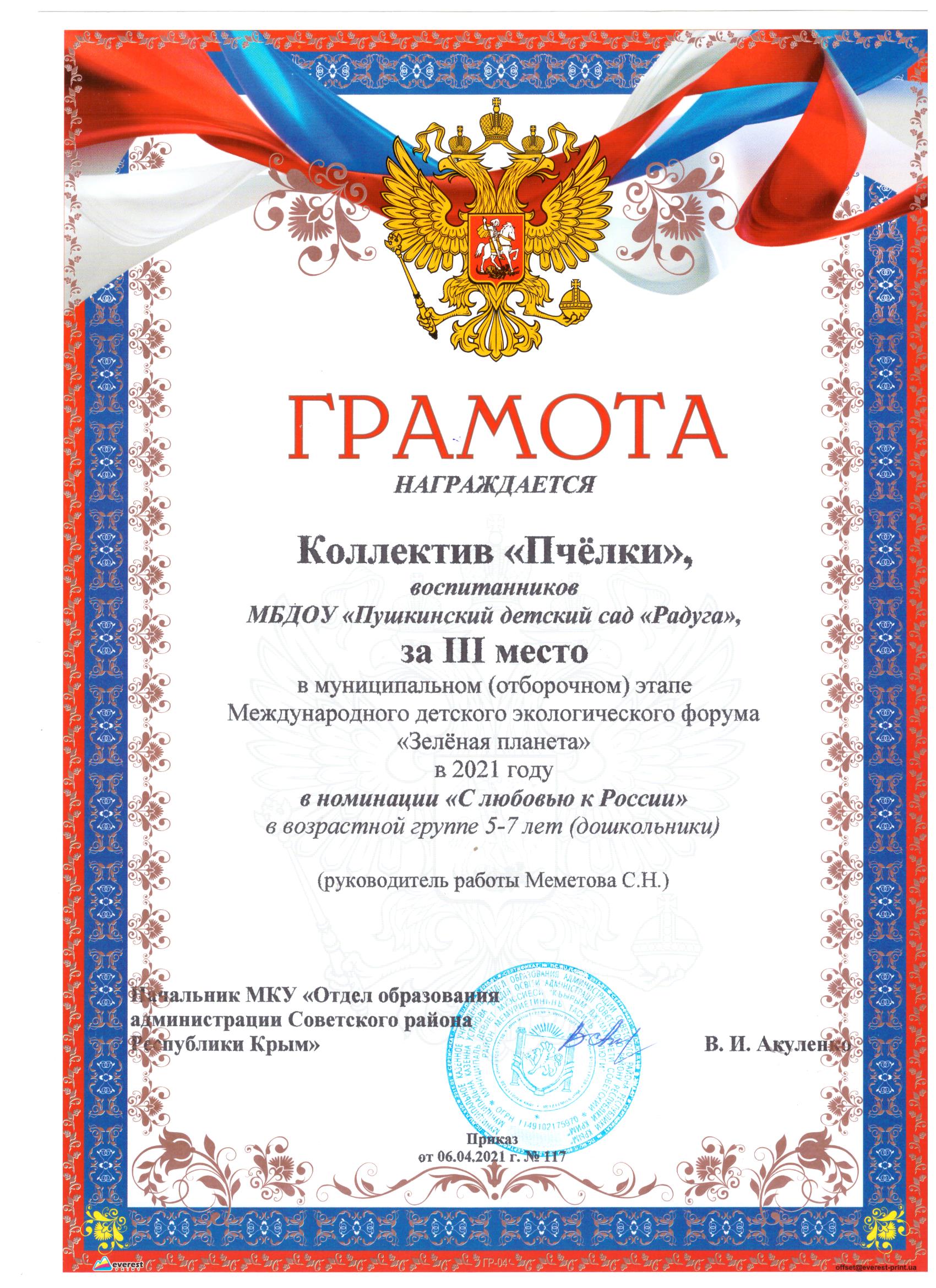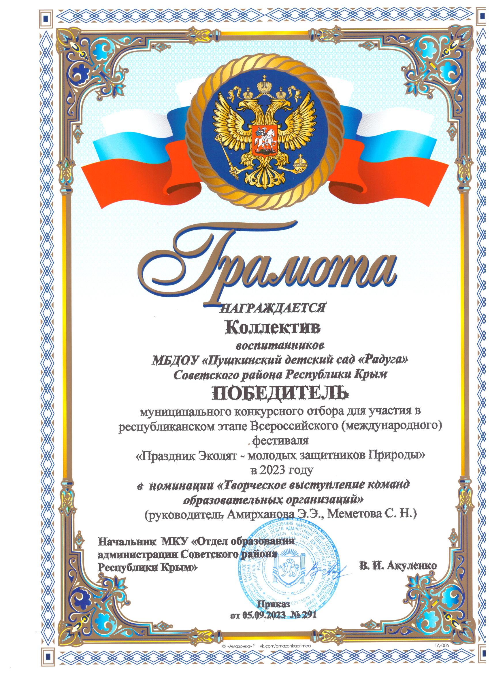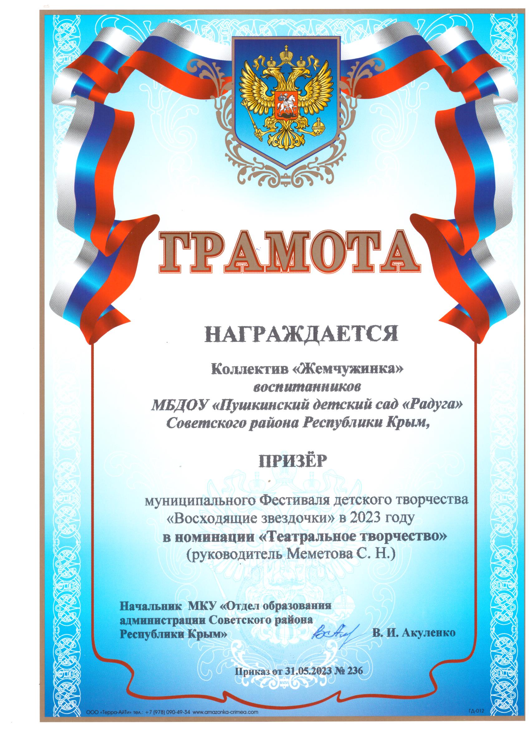 Муниципальное бюджетное дошкольное образовательное учреждение «Пушкинский детский сад «Радуга» Советского района Республики Крым