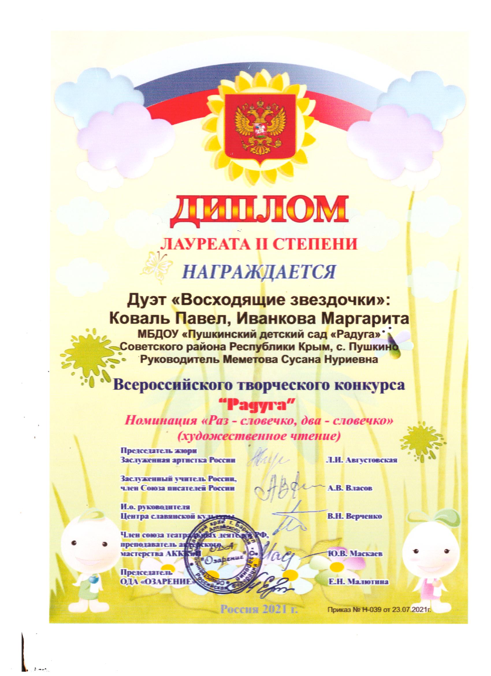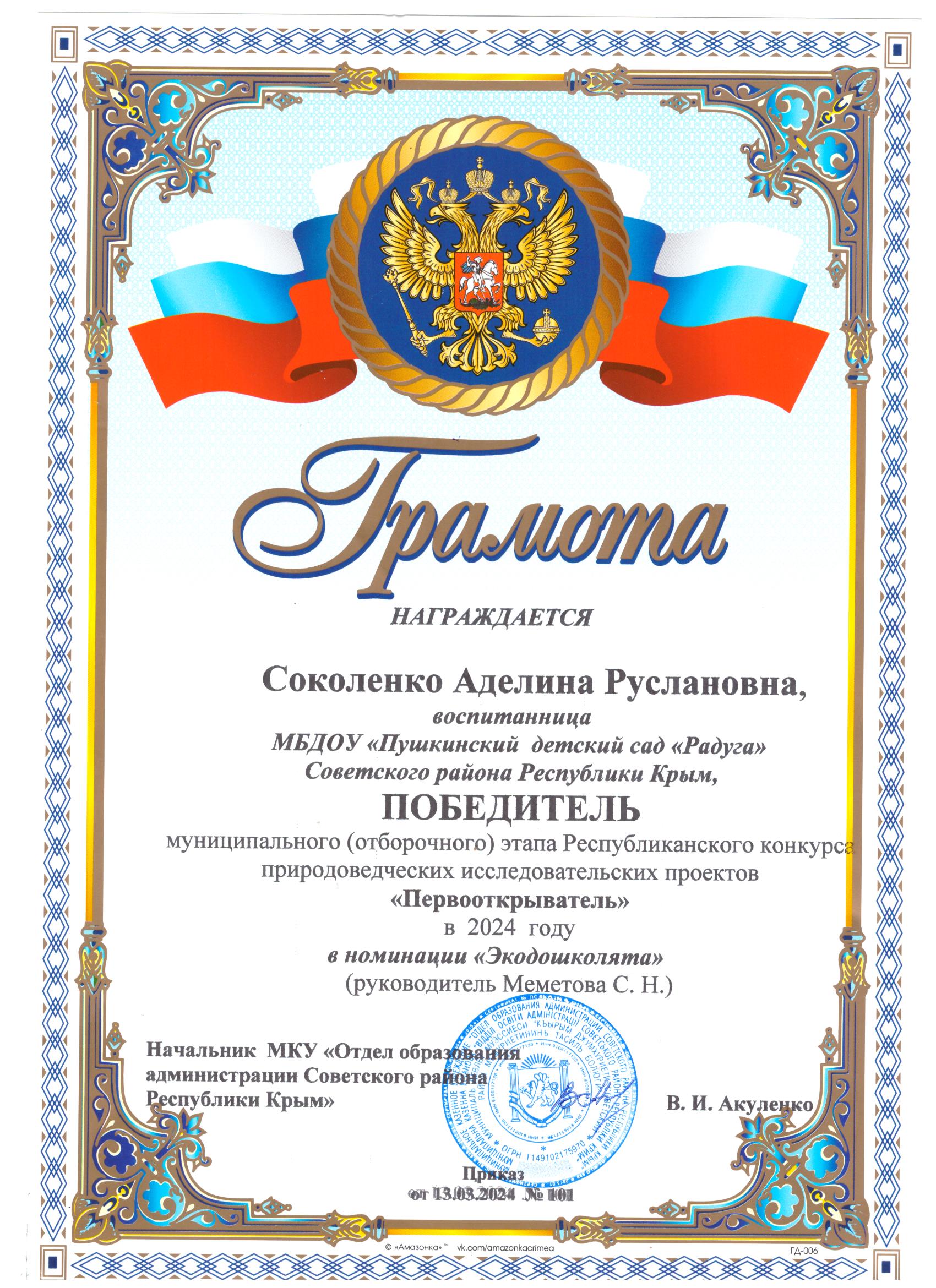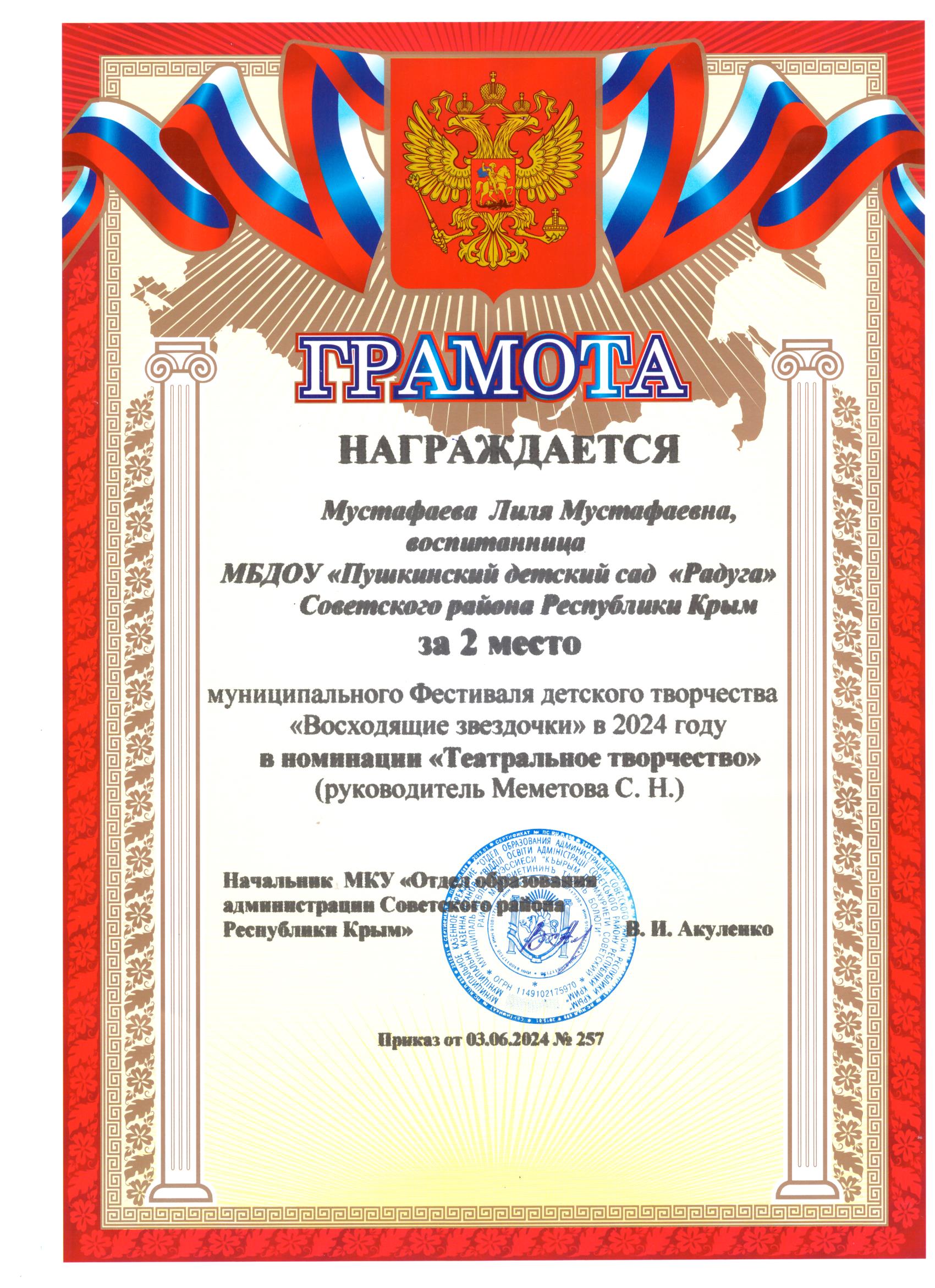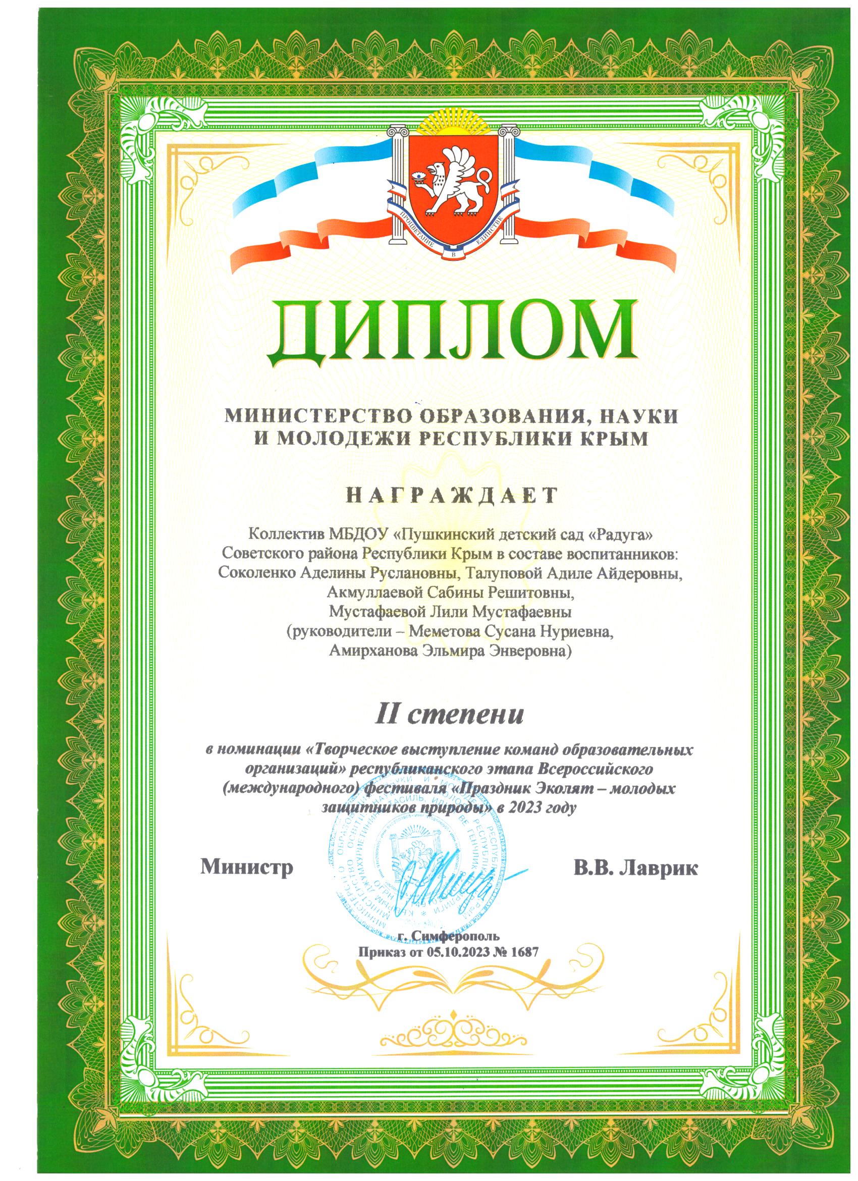 Муниципальное бюджетное дошкольное образовательное учреждение «Пушкинский детский сад «Радуга» Советского района Республики Крым